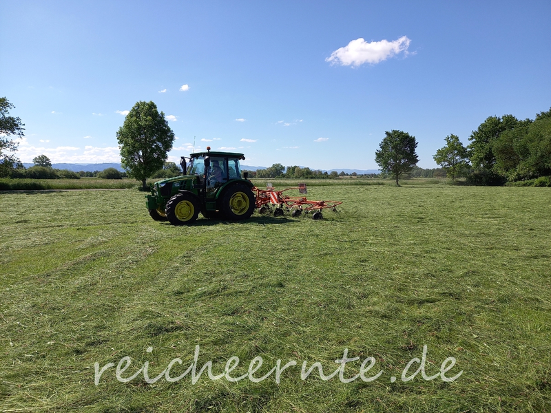 Nach der Grünland-Übernahme von Landwirten im Ruhestand und durch Pacht-Übernahme weiterer Gemeindeflächen erweiterten wir unsere Pachtflächen auf nunmehr über 20ha Grünland, davon sind 95% sogenannte Landschaftspflegeflächen (Stand 2025).