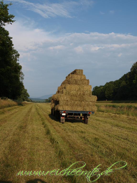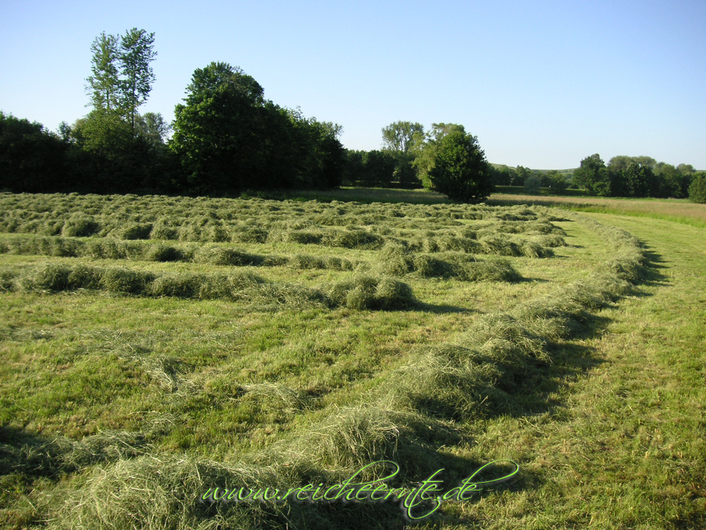 Unsere Wiesen werden nicht gedüngt, sind Jakobskreuzkrautfrei und etwaige Aufkommen von Störpflanzen (z.B. Disteln) werden in Handarbeit entfernt. Pflanzenschutzmittel wurden noch nie und werden weiterhin nicht verwendet. Dies spiegelt sich nicht nur in der Qualität des Heus wieder, sondern ist ein wichtiger Beitrag für den Erhalt der Biodiversität in unserem Landkreis.